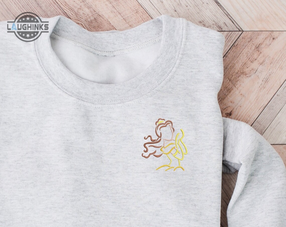 Belle Embroidered Crewneck Disney Embroidered Sweatshirt Beauty And The Beast Crewneck Disney Princess Sweatshirt Womens Disney Crewneck Embroidery Tshirt Sweatshirt Hoodie Gift Laughinks 1 2