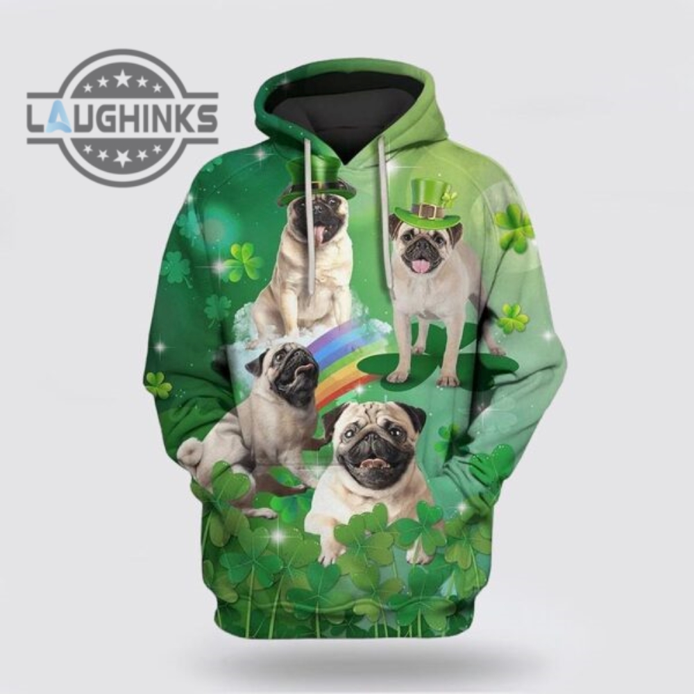 St Patricks Day Hoodie Cute Pugs Dog Saint Patricks Day Over Print 3d Hoodie Tshirt Sweatshirt Mens Womens Irish Saint Pattys Day Gift Lucky Clovers Shamrock Tee Laughinks 1
