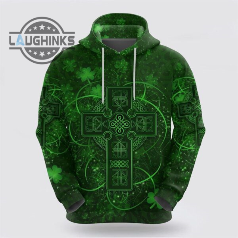 St Patricks Day Hoodie Ireland Hoodie Irish Saint Patricks Day Celtic Cross Tshirt Sweatshirt Mens Womens Irish Saint Pattys Day Gift Lucky Clovers Shamrock Tee Laughinks 1