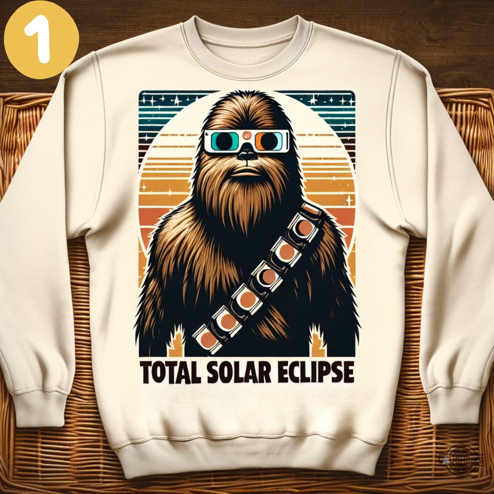 Star Wars Chewbacca T Shirt Sweatshirt Hoodie Men Women Kid Chewie Wearing Solar Eclipse Viewing Glasses Funny Shirts Total Solar Eclipse 2024 Meme Tshirt Laughinks 1