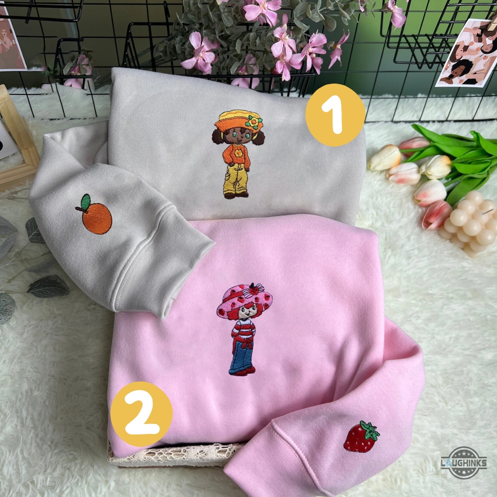 Strawberry Shortcake And Friends Shirt Near Me Embroidered Strawberry Shortcake And Orange Blossom Group Matching Shirts Cute Cartoon Crewneck Tee Laughinks 1