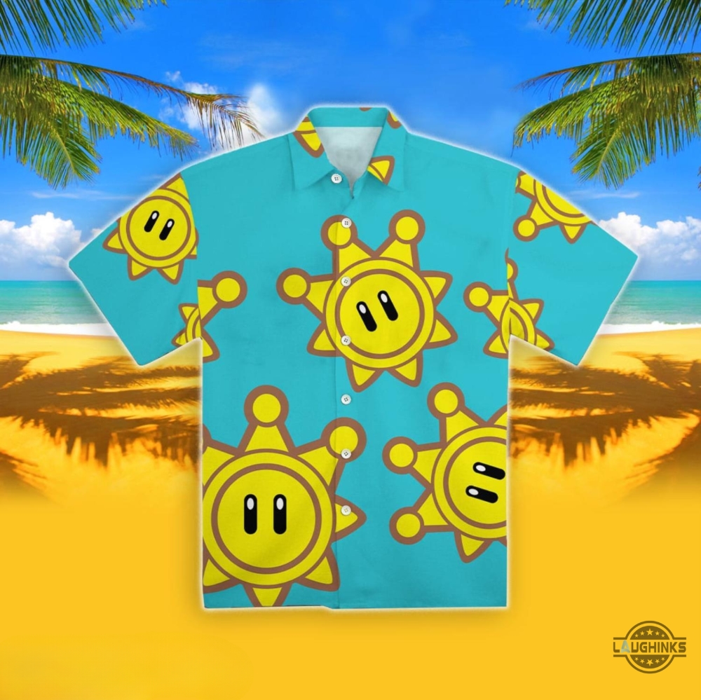 Super Mario Sunshine Hawaiian Shirt Super Mario Sunshine Button Up Shirt And Shorts Plumber Brothers Halloween Costume Cosplay New Bros 2 Gamer Gift Laughinks 1