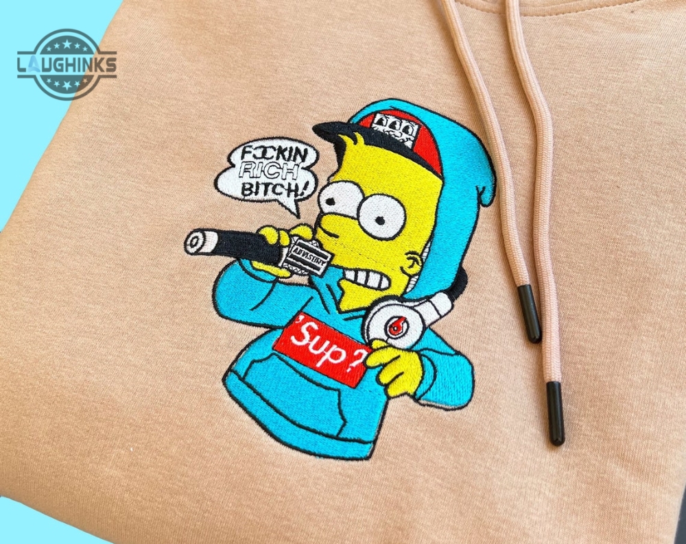 The Simpsons Bart Embroidered Sweatshirt Hoodie Embroidered Sweatshirt Anime Embroider Cartoon The Simpsons Hoodies Simpsons Unisex Embroidery Tshirt Sweatshirt Hoodie Gift Laughinks 1