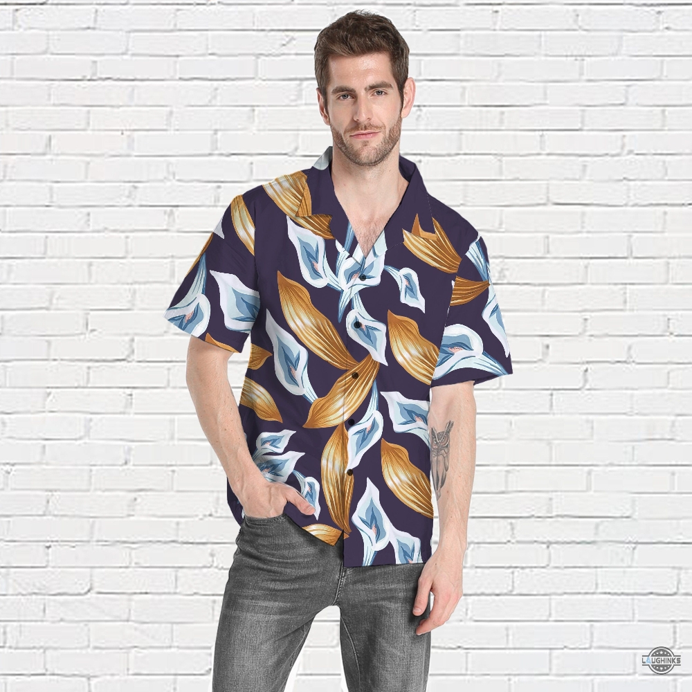 Tom Selleck Hawaiian Shirts For Sale 3d Printed Tom Selleck Magnum Pi Calla Lily Purple Aloha Beach Shirt And Shorts 80s Movie Cosplay Button Up Shirts Laughinks 1