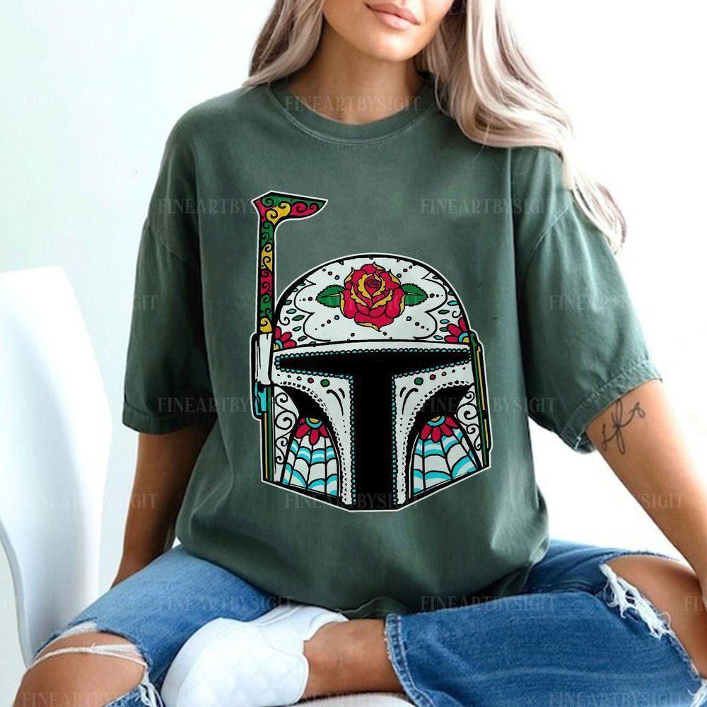 Boba Fett Sugar Skull Mandalorian Helmet Star Wars Vuitino Shirt