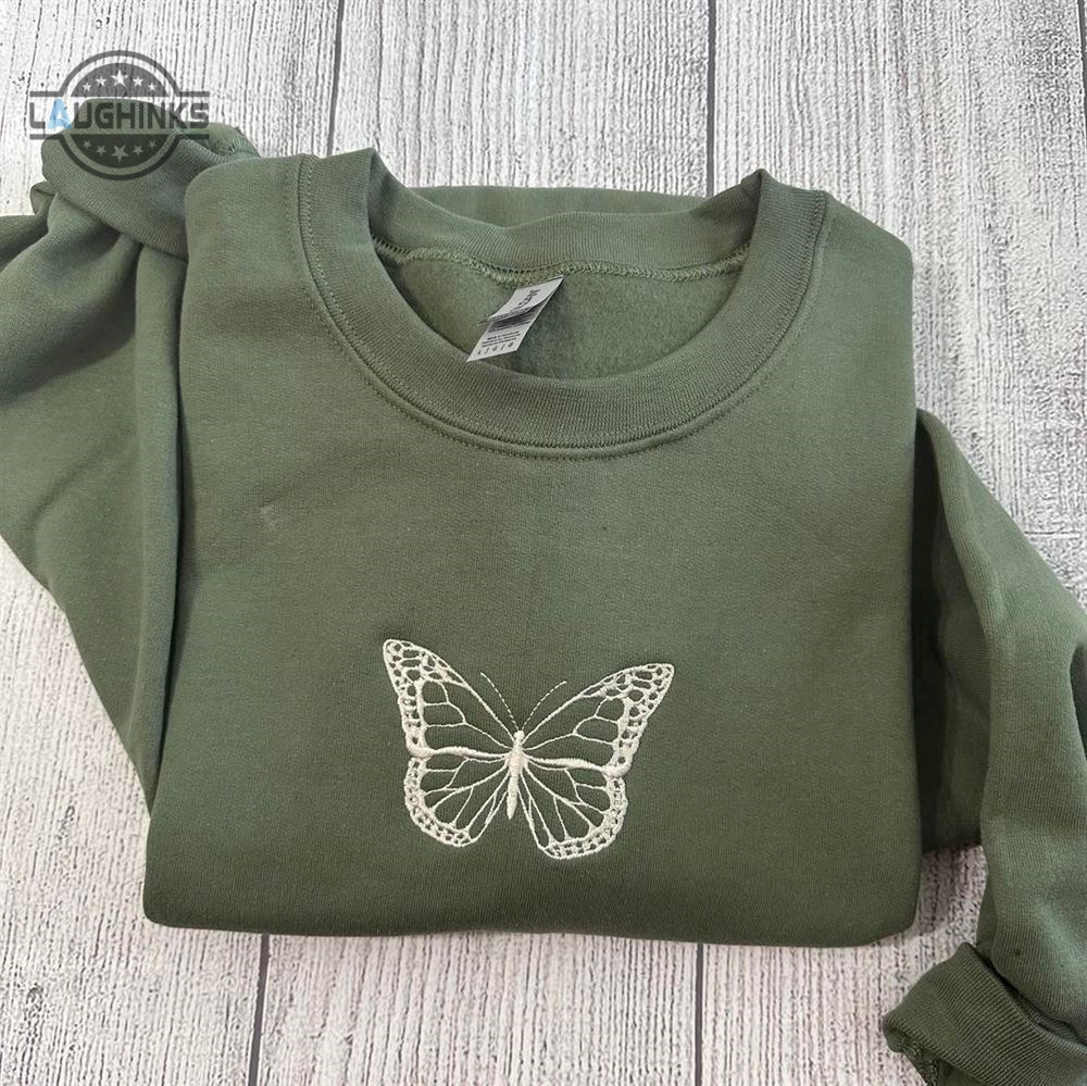 Butterfly Embroidered Sweatshirt Womens Embroidered Sweatshirts Tshirt Sweatshirt Hoodie Trending Embroidery Tee Gift Laughinks 1