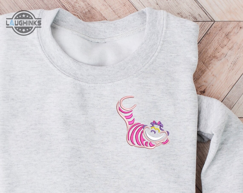Cheshire Cat Embroidered Crewneck Disney Embroidered Sweatshirt Alice In Wonderland Crewneck Disney Sweatshirt Womens Disney Crewneck Embroidery Tshirt Sweatshirt Hoodie Gift Laughinks 1