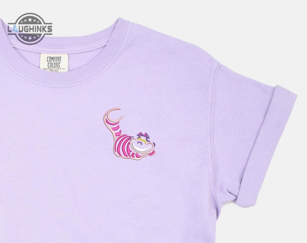 Cheshire Cat Embroidered Tshirt Alice In Wonderland Embroidered Shirt Alice T Shirt Disney Shirt Disney Tshirt Womens Disney Shirt Embroidery Tshirt Sweatshirt Hoodie Gift Laughinks 1