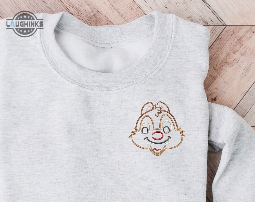 Chip Dale Embroidered Crewneck Disney Embroidered Sweatshirt Chipmunk Crewneck Disney Princess Sweatshirt Womens Disney Crewneck Embroidery Tshirt Sweatshirt Hoodie Gift Laughinks 1