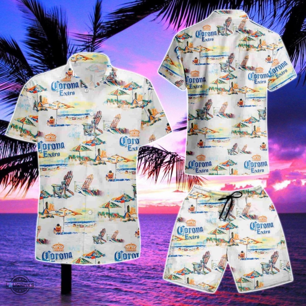 Corona Hawaiian Shirt And Shorts Corona Extra Beach Lounge Summer Aloha Beach Shirts Corona Beer All Over Printed 3d Button Up Shirt Laughinks 1