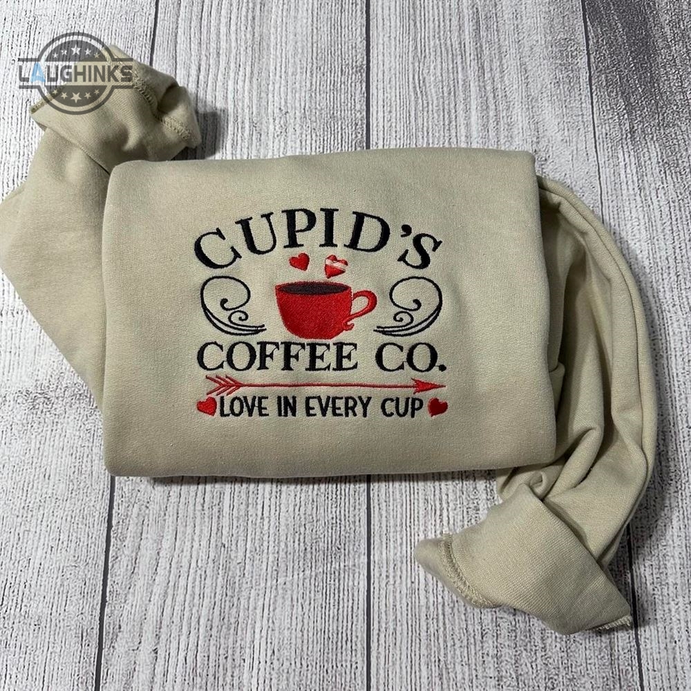 Cupid Coffee Co Embroidered Sweatshirt Womens Embroidered Sweatshirts Tshirt Sweatshirt Hoodie Trending Embroidery Tee Gift Laughinks 1