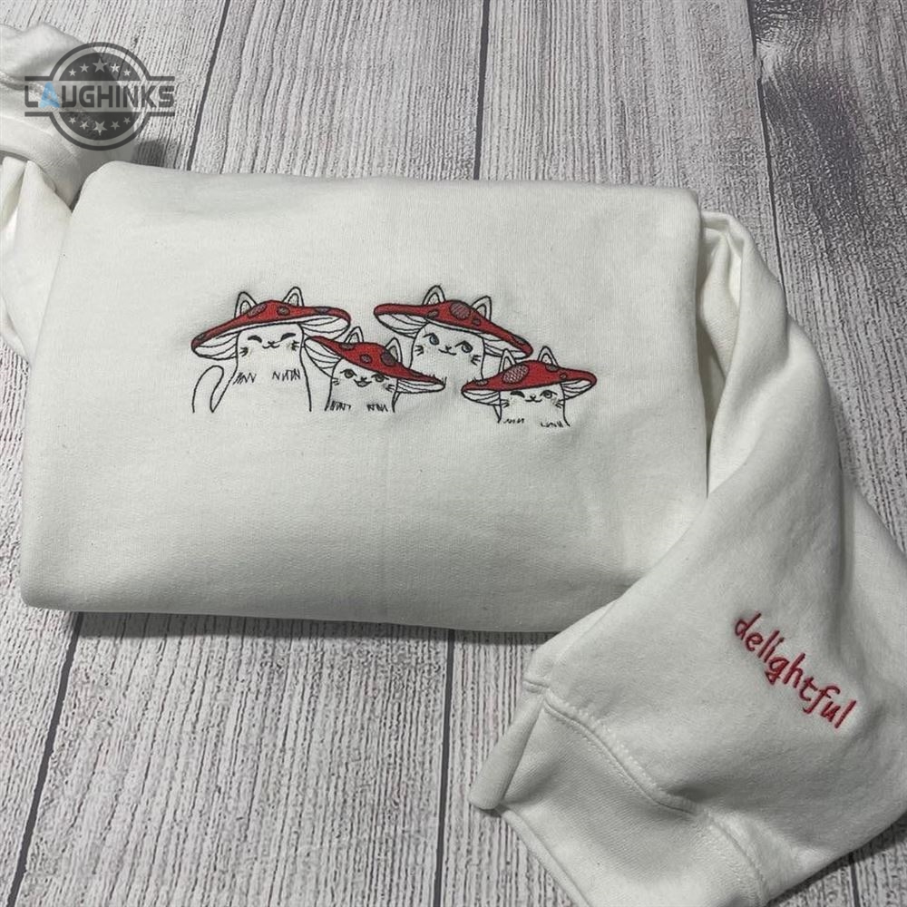 Delightful Mushroom Cats Embroidered Crewneck Womens Embroidered Sweatshirts Tshirt Sweatshirt Hoodie Trending Embroidery Tee Gift Laughinks 1