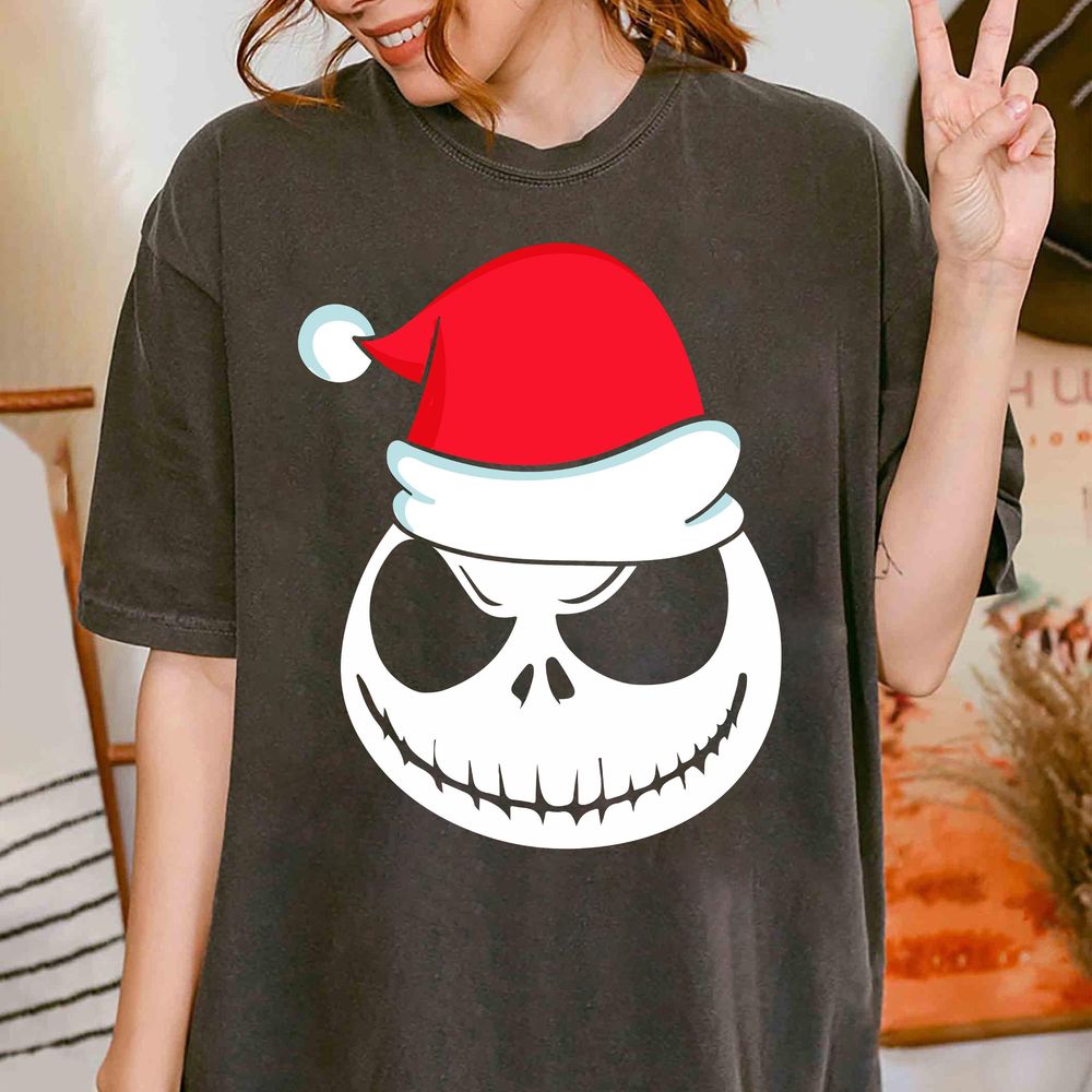 Disney Jack Skellington Face Santa Hat Tee The Nightmare Before Christmas Vuitino Merch
