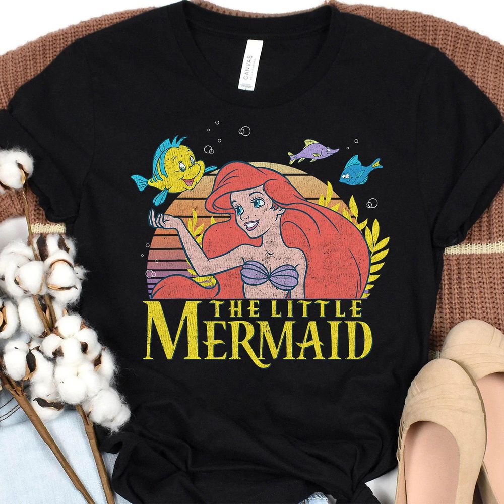 Disney The Little Mermaid Ariel And Flounder Logo Graphic Vuitino Merch
