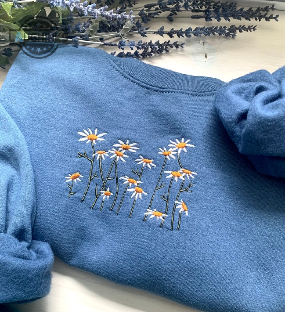 Embroidered Daisy Crewneck Embroidery Tshirt Sweatshirt Hoodie Gift