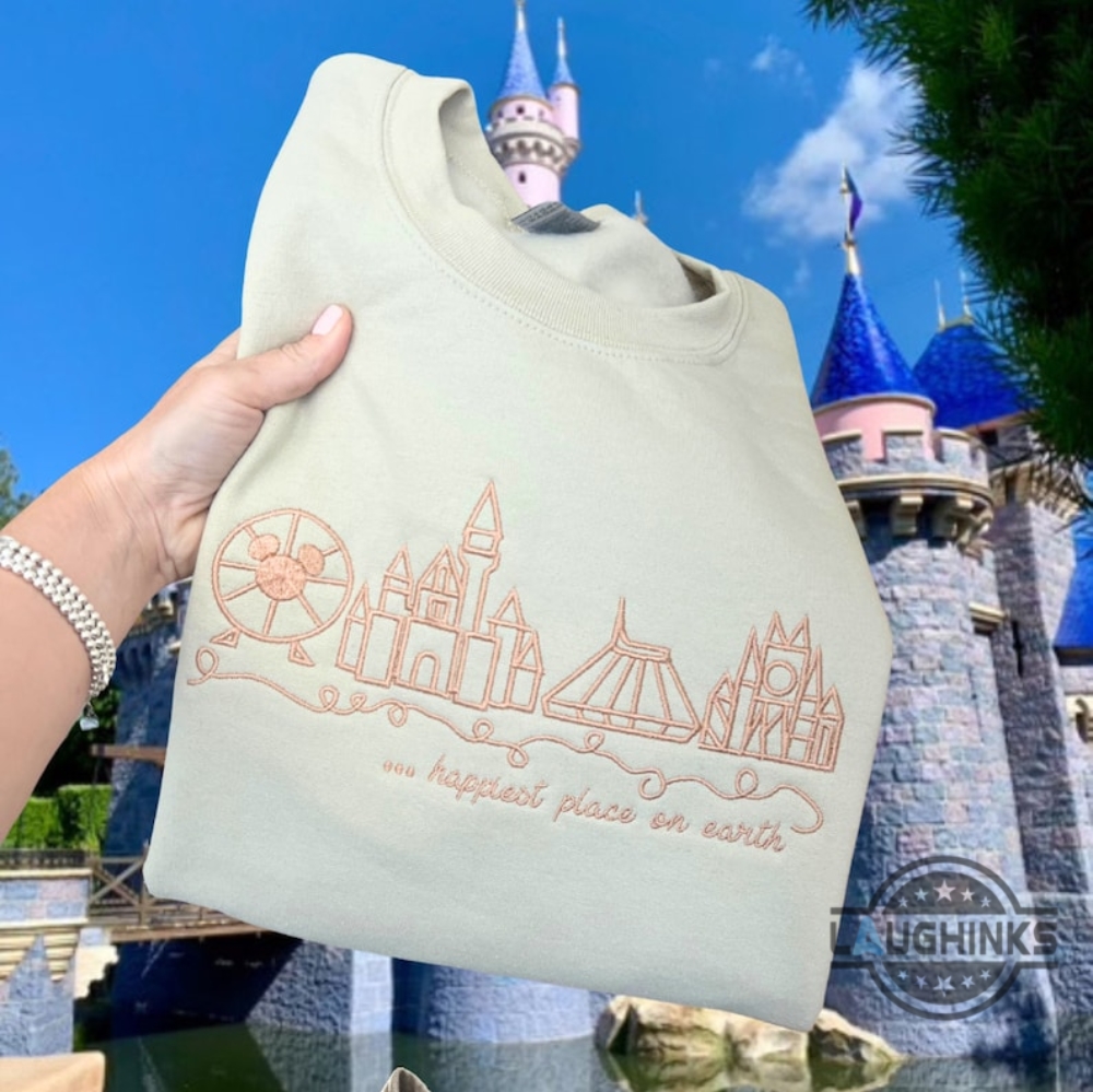 Embroidered Disney Crewneck Sweatshirt Tshirt Hoodie Embroidered Disney Monogrammed Sweater Disneyland Tee Disney World Happiest Place On Earth Laughinks 1