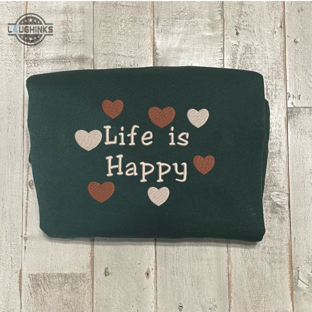 Embroidered Life Is Happy Crewneck Cute Vintage Sweatshirt Trendy Crewneck Embroidery Tshirt Sweatshirt Hoodie Gift Laughinks 1