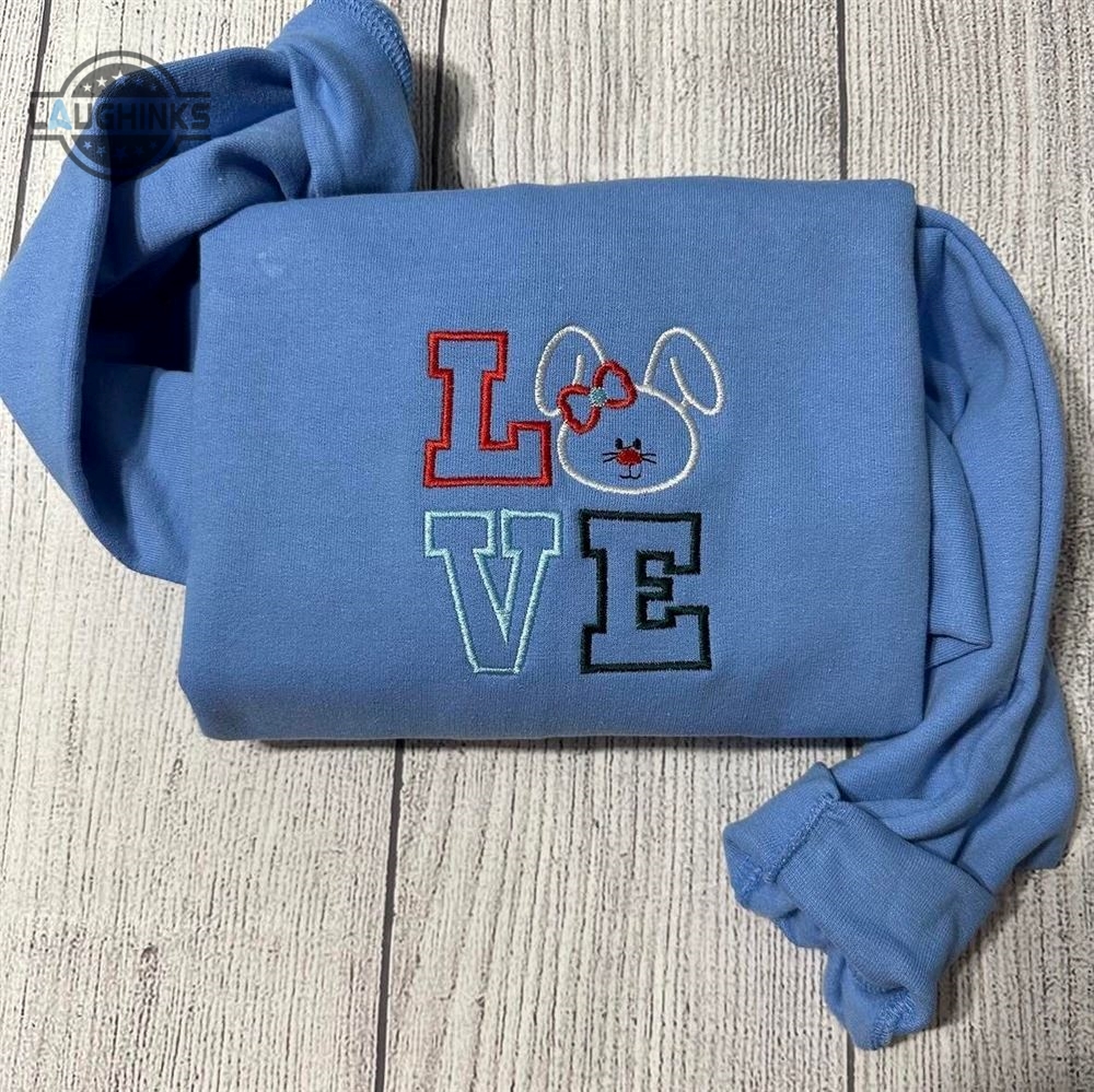 Embroidered Love Bunny Sweatshirt Womens Embroidered Sweatshirts Tshirt Sweatshirt Hoodie Trending Embroidery Tee Gift Laughinks 1