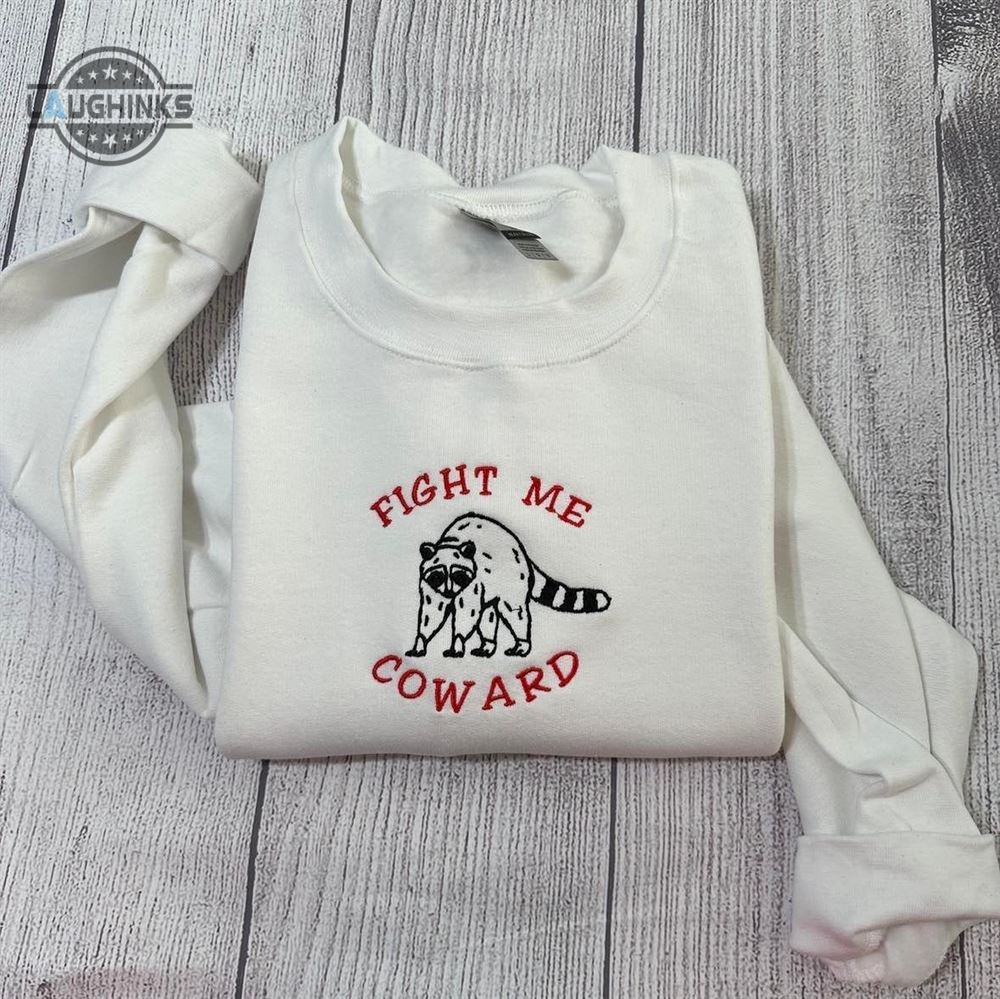 Fight Me Coward Raccoon Embroidered Sweatshirt Womens Embroidered Sweatshirts Tshirt Sweatshirt Hoodie Trending Embroidery Tee Gift Laughinks 1
