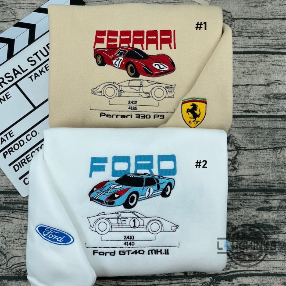 Ford Vs Ferrari Shirt For Sale Ferrari X Ford Racing Embroidered T Shirt Sweatshirt Hoodie Mens Womens Formula One Tee F1 Race Cars Embroidery Tshirt Laughinks 1