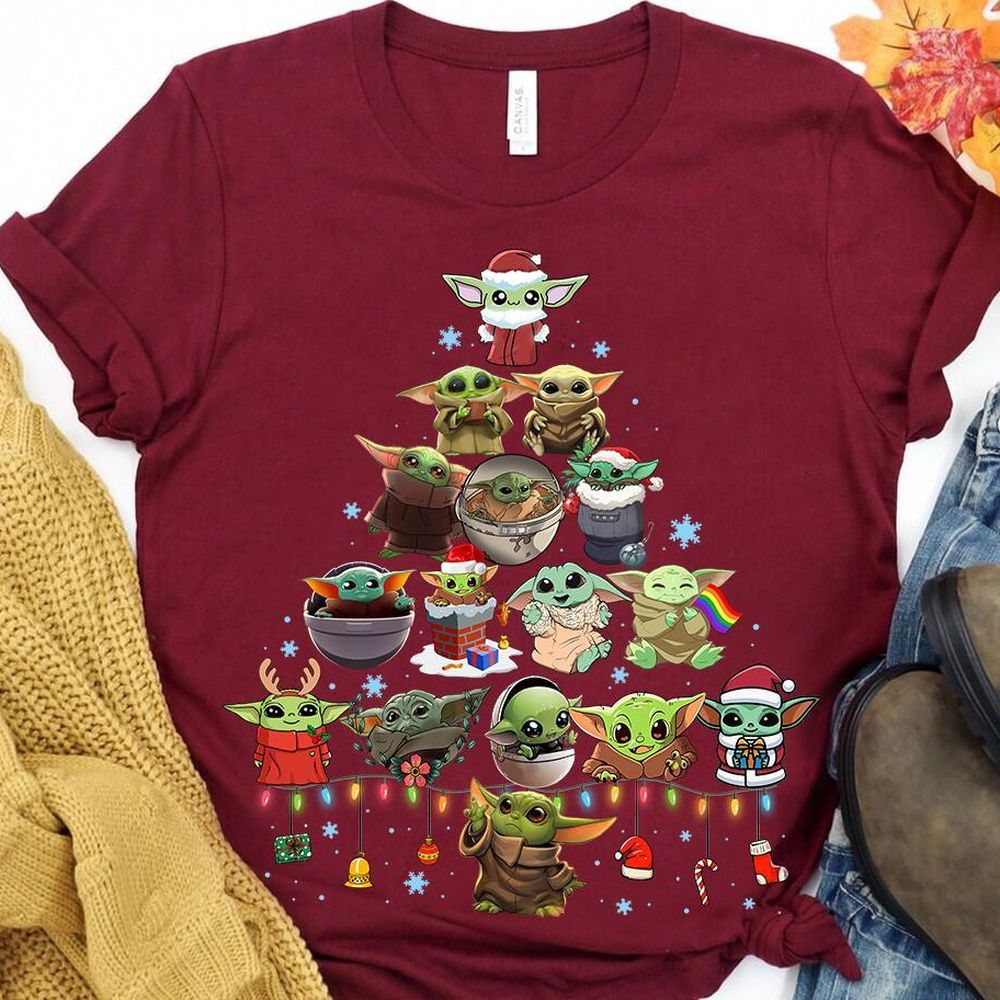 Funny Star Wars The Mandalorian Baby Yoda Christmas Tree Apparel