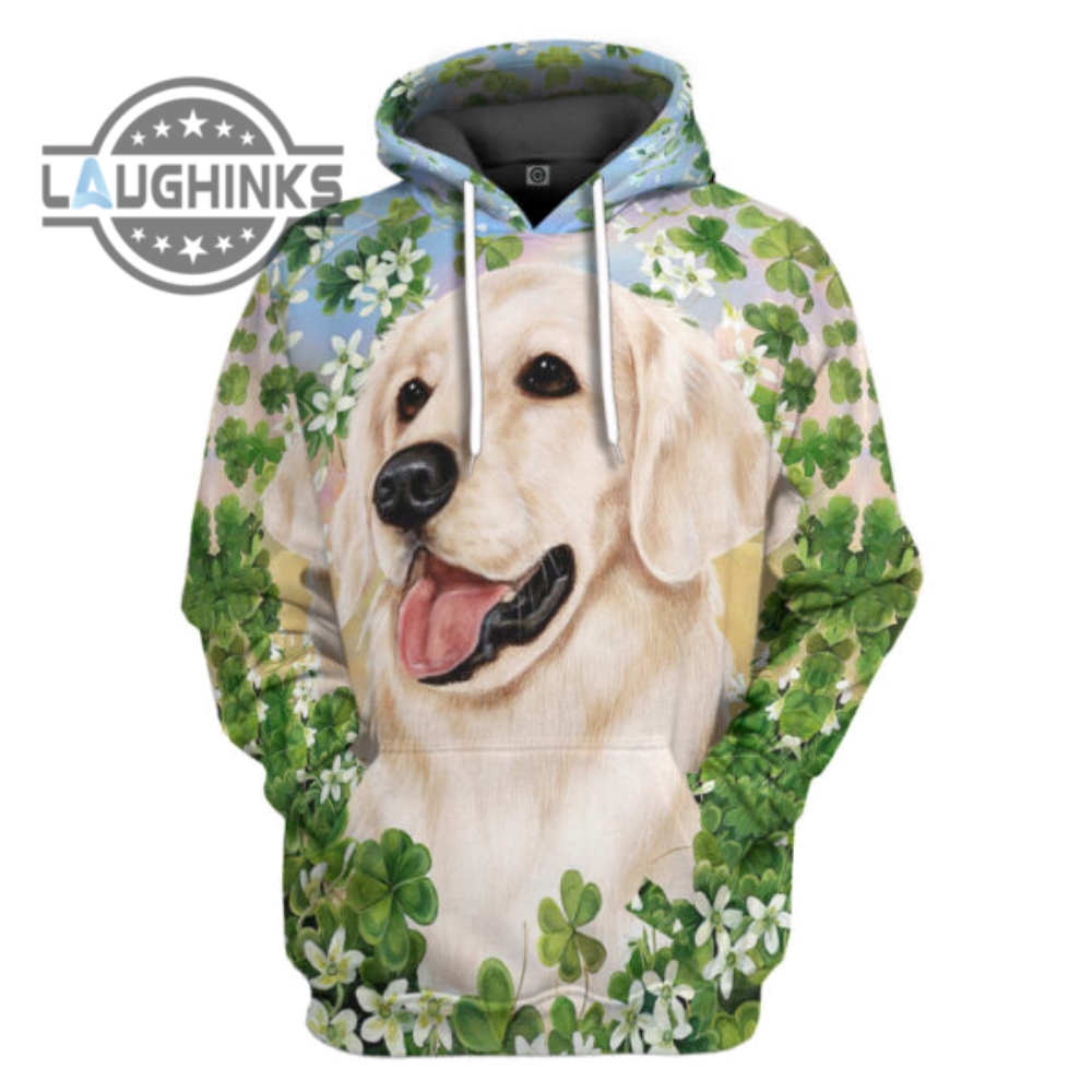 Golden Retriever White St Patricks Day All Over Print Tshirt Hoodie Fan Gifts Idea Tshirt Sweatshirt Mens Womens Irish Saint Pattys Day Gift Lucky Clovers Shamrock Tee Laughinks 1
