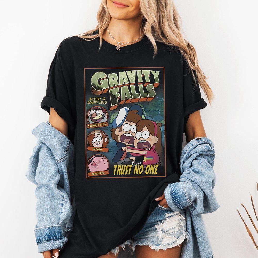 Gravity Falls Trust No One Scared Dipper Mabel Disney Vuitino Shirt