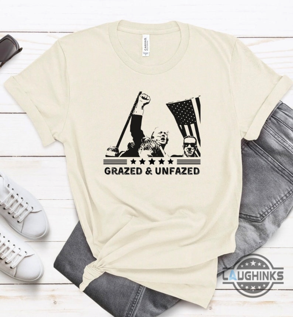Grazed And Unfazed Shirt Trump Shooter Shirt Trump Assasination Tee Bloody Donald Trump Still Standing After Shooting Shirts Laughinks 1