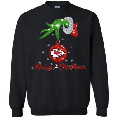 Grinch Hand Ornament Kansas City Chiefs Glitter Christmas Shirts