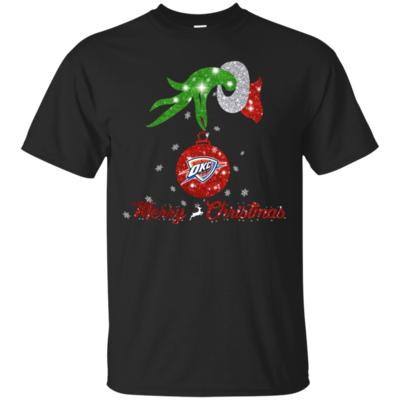 Grinch Hand Ornament Oklahoma City Thunder Glitter Christmas Shirts