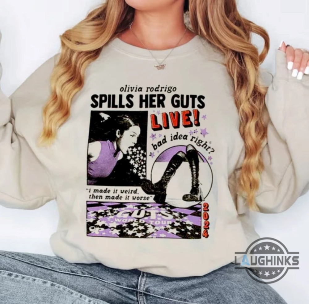 Guts Tour Shirt Sweatshirt Hoodie Mens Womens Olivia Rodrigo Guts Tour 2024 Shirts The Guts World Tour Tee Spills Her Guts Live Bad Idea Right Concert Tee Laughinks 1