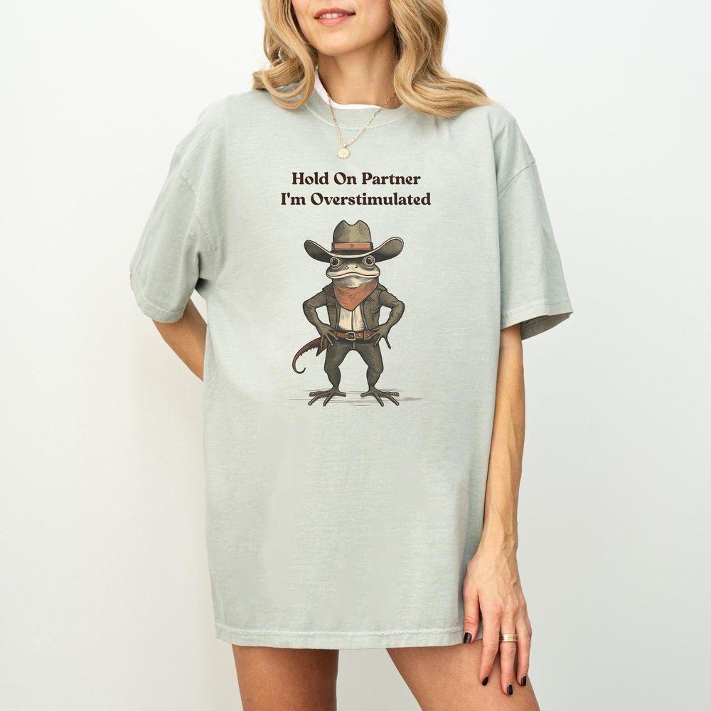 Hold On Partner Im Overstimulated Funny Frog Meme Vuitino Shirt