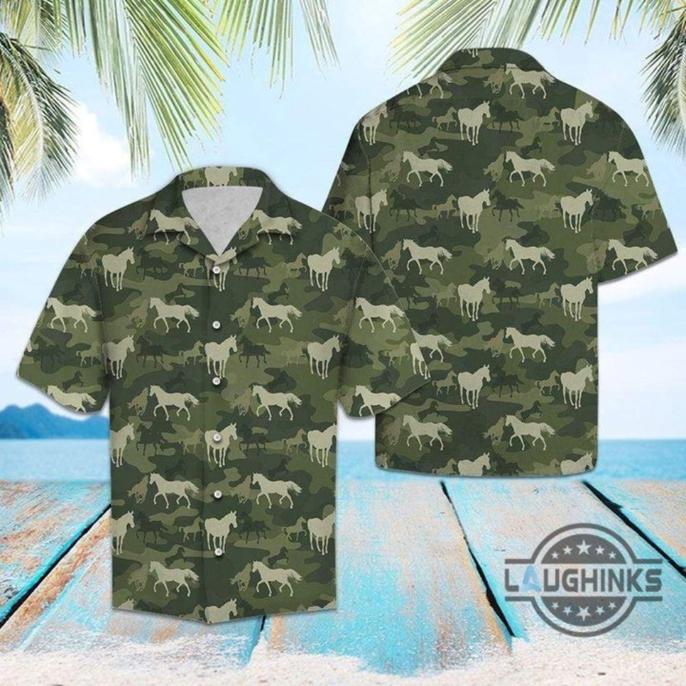 Horse Camo Tropical Hawaiian Shirt 131 Aloha Hawaii Shirts Aloha Summer Beach Button Up Shirts And Shorts Laughinks 1
