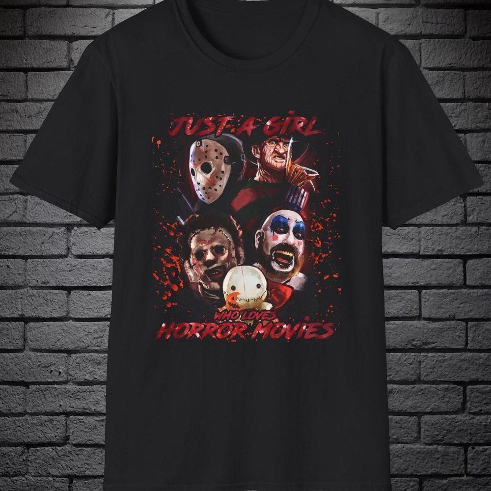 Just A Girl Who Loves Horror Movies Vintage Horror Lover Set Halloween Vuitino Shirt