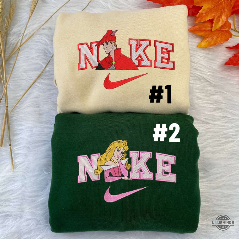 Aurora Crew Neck Sweatshirt Tshirt Hoodie Princess Aurora X Prince Phillip Embroidered Shirts Disney Nike Embroidery Tee Valentines Day Couple Matching Gift Laughinks 1