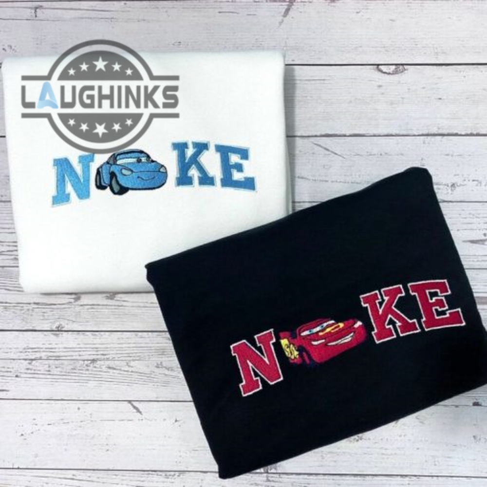 Lightning Mcqueen And Sally Sweatshirts Nike Mcqueen And Sally Disney Cars Couple Matching Embroidered Shirts Sweaters Hoodies Laughinks 1 3