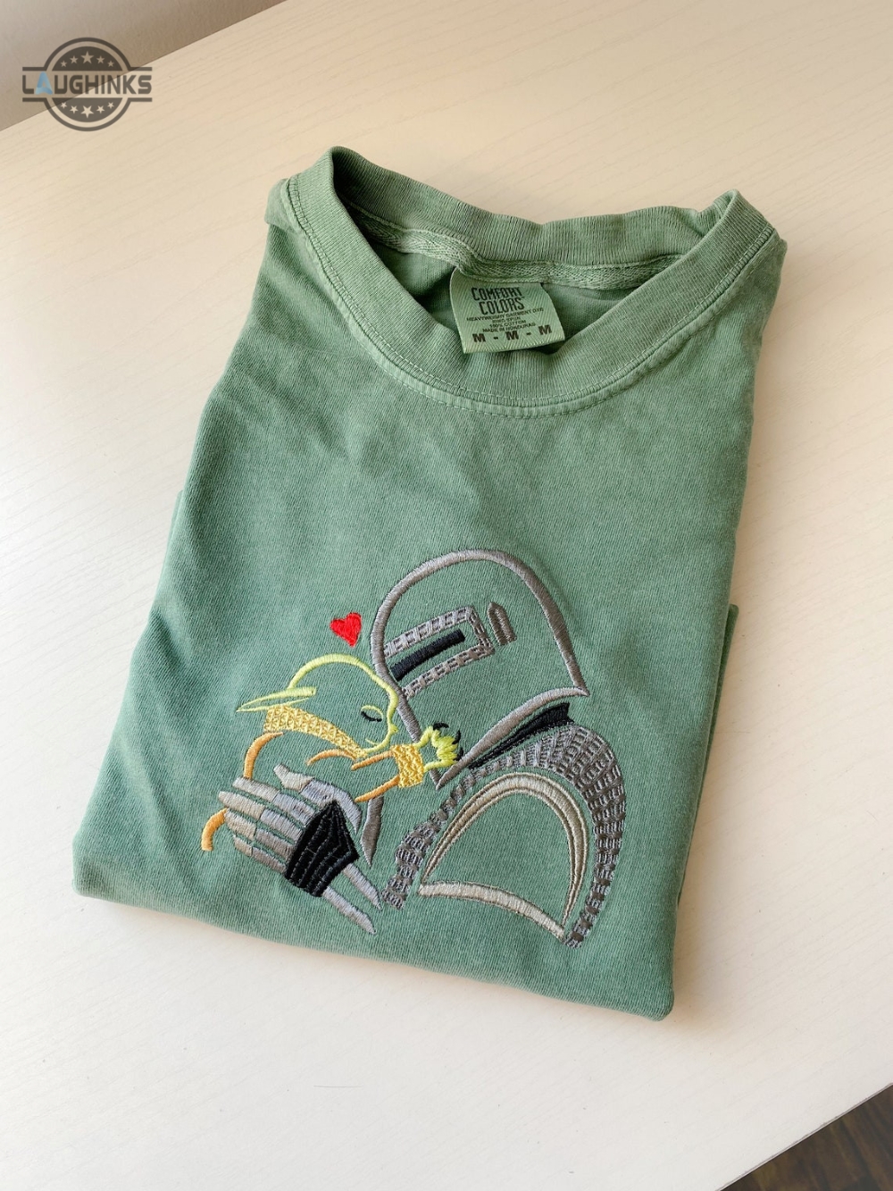 Mandalorian And Grogru Love Embroidered T Shirt Star Wars Disney Embroidered Shirt Galaxys Edge Shirt Embroidery Tshirt Sweatshirt Hoodie Gift Laughinks 1