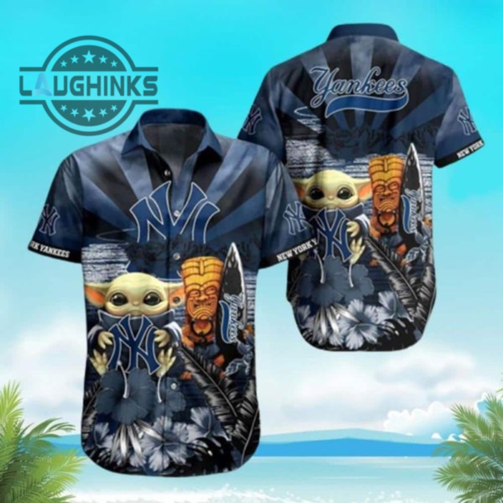 Baby Yoda Star Wars New York Yankees Hawaiian Shirt Beach Vacation Gift Ny Yankees Button Up Shirt And Shorts Mlb Baseball Aloha Beach Shirt Laughinks 1
