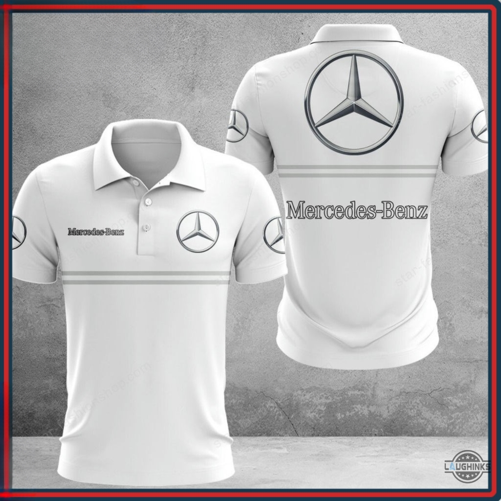 Mercedes F1 Polo Shirt All Over Printed Formula One Car Racing Shirts Mercedes Benz Logo White Golf Uniform Tee Shirt Gift For Car Guys Racers Racing Lovers Laughinks 1