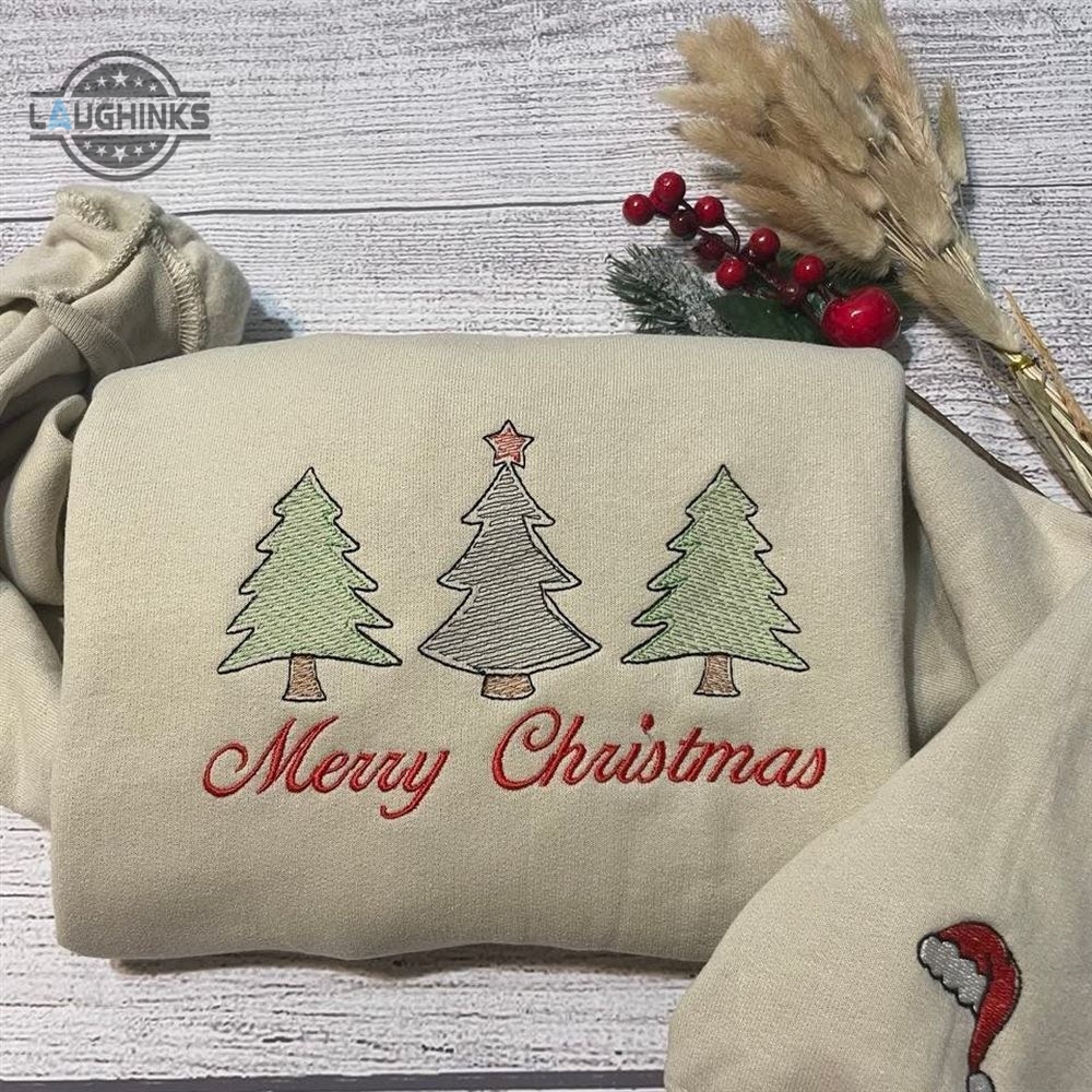 Merry Christmas Embroidered Sweatshirt Womens Embroidered Sweatshirts Tshirt Sweatshirt Hoodie Trending Embroidery Tee Gift Laughinks 1