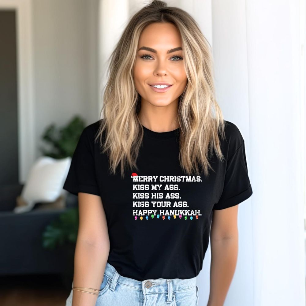 Merry Christmas Kiss My Ass Kiss His Assunisex Heavy Cotton Tee Funny Christmas Apparel