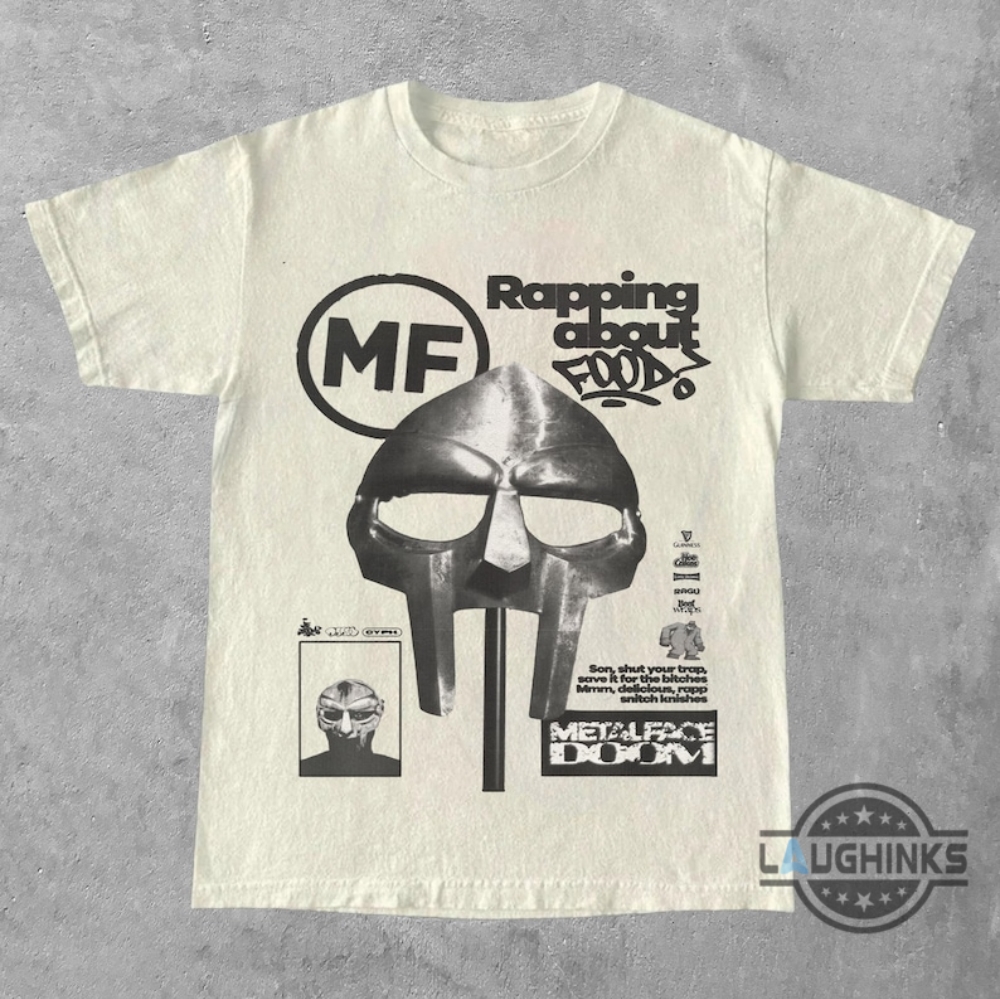 Mf Doom Graphic Tee Shirt Sweatshirt Hoodie Vintage 90s Bootleg Rapping About Food Tshirt Metalface Doom Shirts Retro Hip Hop Mf Doom Mask Gift For Fans Laughinks 1 1