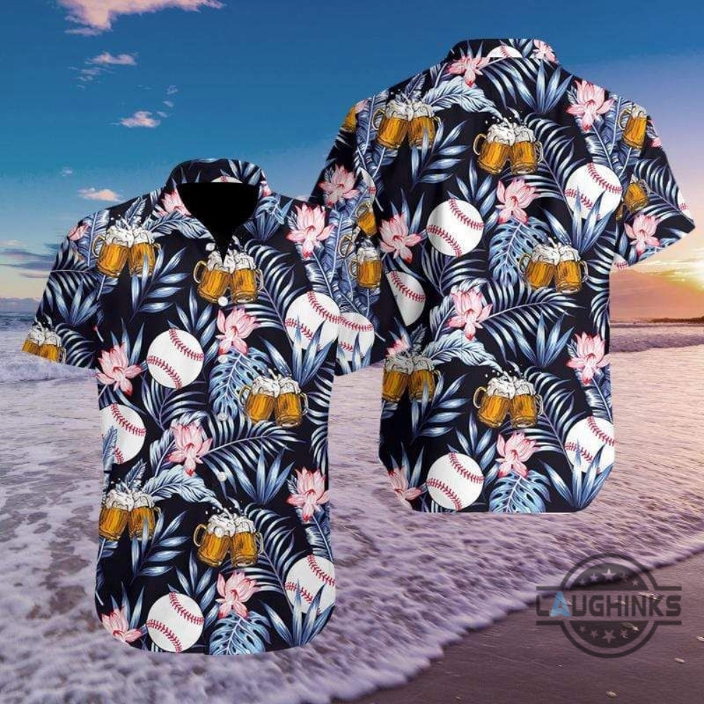 Baseball And Beer Blue Tropical Hawaiian Shirt 131 Aloha Hawaii Shirts Aloha Summer Beach Button Up Shirts And Shorts Laughinks 1