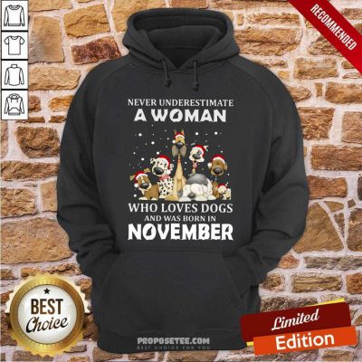 Never Underestimate A Woman Who Loves Dogs And Was Born In November Christmas Hoodie-design By Proposetees.com