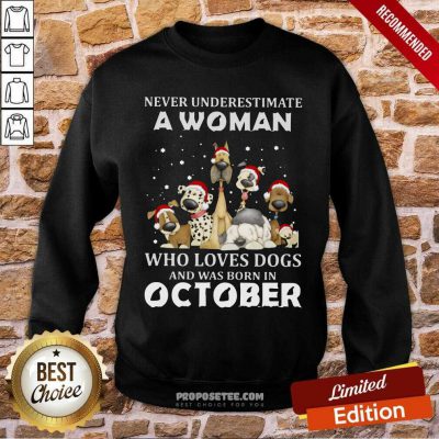 Never Underestimate A Woman Who Loves Dogs And Was Born In October Christmas Sweatshirt-design By Proposetees.com
