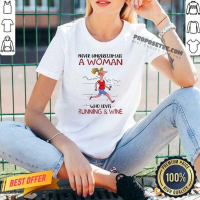 Never Underestimate A Woman Who Loves Running And Wine V-neck Design By Proposetees.com