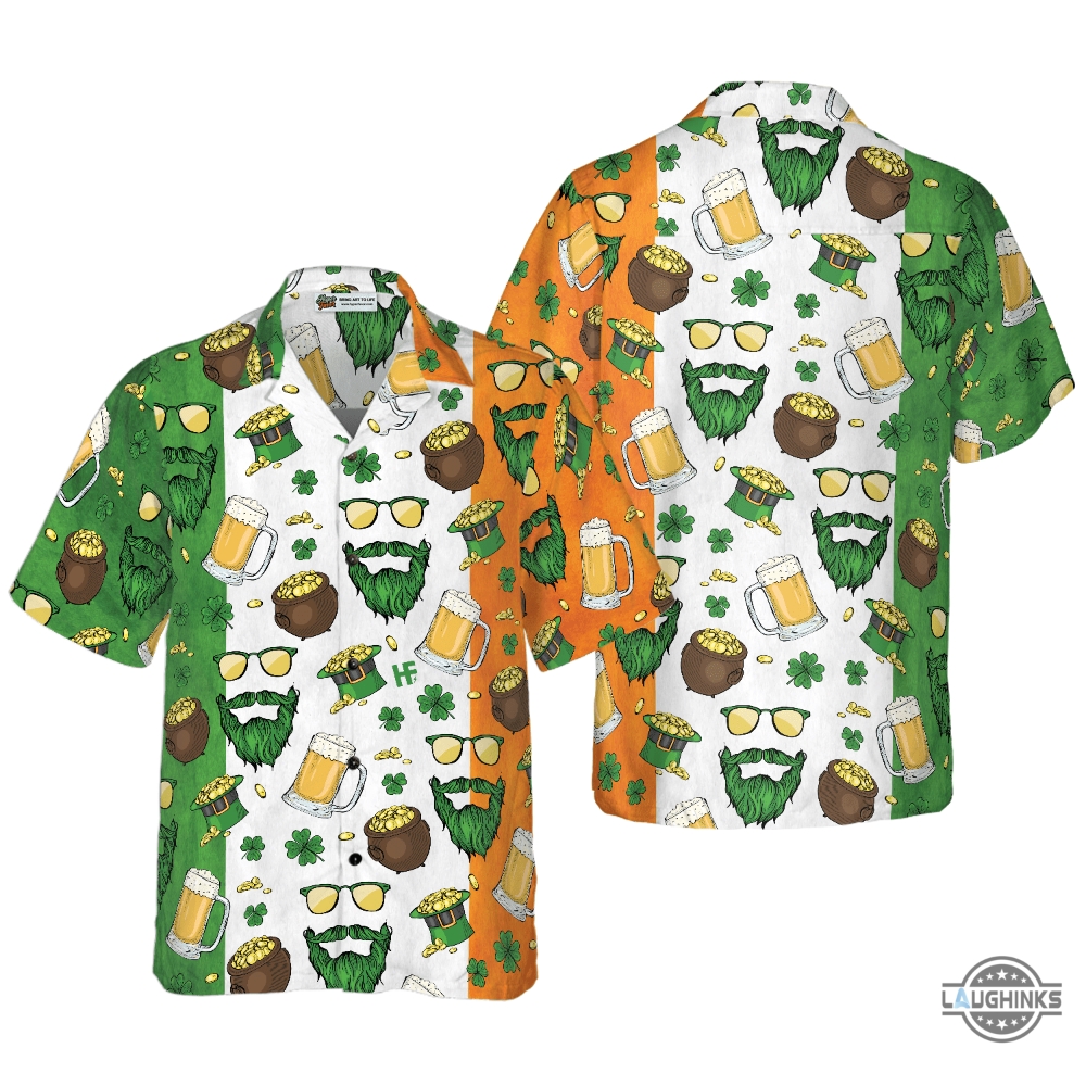 Beard Saint Patricks Day Seamless Pattern Hawaiian Shirt Aloha Summer Beach Button Up Shirts And Shorts Laughinks 1